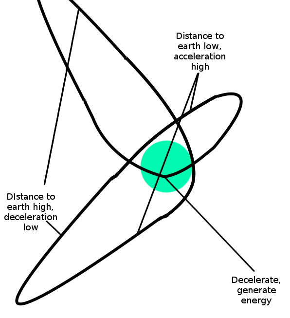 2017 Jun 22 See all postsSuppose that someone walks up to you and starts exclaiming to you that he thinks he has figured out how to create a source of unlimited free energy. His scheme looks as follows. First, you get a spaceship up to low Earth orbit. There, Earth's gravity is fairly high, and so the spaceship will start to accelerate heavily toward the earth. The spaceship puts itself into a trajectory so that it barely brushes past the Earth's atmosphere, and then keeps hurtling far into space. Further in space, the gravity is lower, and so the spaceship can go higher before it starts once again coming down. When it comes down, it takes a curved path toward the Earth, so as to maximize its time in low orbit, maximizing the acceleration it gets from the high gravity there, so that after it passes by the Earth it goes even higher. After it goes high enough, it flies through the Earth's atmosphere, slowing itself down but using the waste heat to power a thermal reactor. Then, it would go back to step one and keep going.
