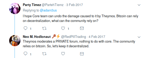 A common strategy used by defenders of Theymos's censorship was to say that heavy-handed moderation is okay because /r/bitcoin is "a private forum" owned by Theymos, and so he has the right to do whatever he wants in it; those who dislike it should move to other forums: