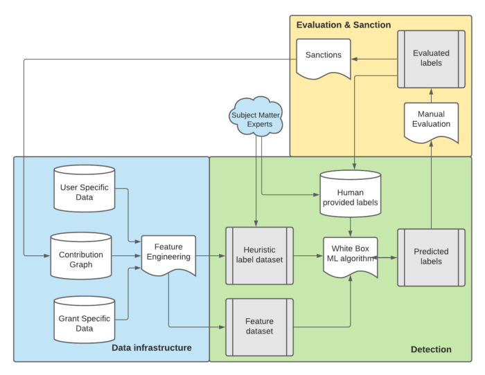 A diagram from the Gitcoin team's post describin their process for finding and dealing with adversarial behavior.