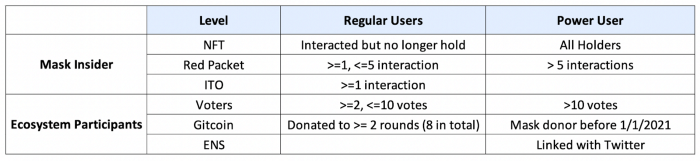 The table from Maskbook's announcement post showing who is eligible for the airdrops.