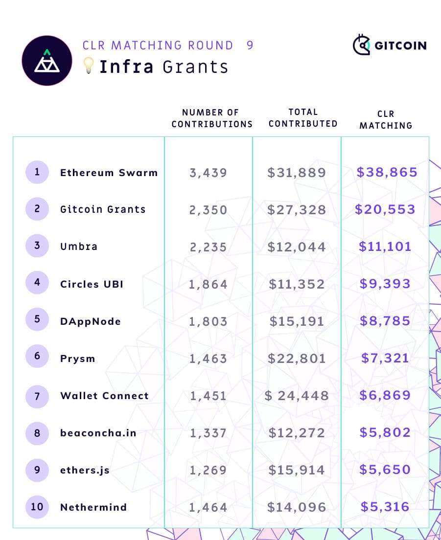 Gitcoin Grants Round 9 has just finished, and as usual the round has been a success. Along with 500,000 in matching funds, $1.38 million was donated by over 12,000 contributors to 812 different projects, making this the largest round so far. Not only old projects, but also new ones, received a large amount of funding, proving the mechanism's ability to avoid entrenchment and adapt to changing circumstances. The new East Asia-specific category in the latest two rounds has also been a success, helping to catapult multiple East Asian Ethereum projects to the forefront.