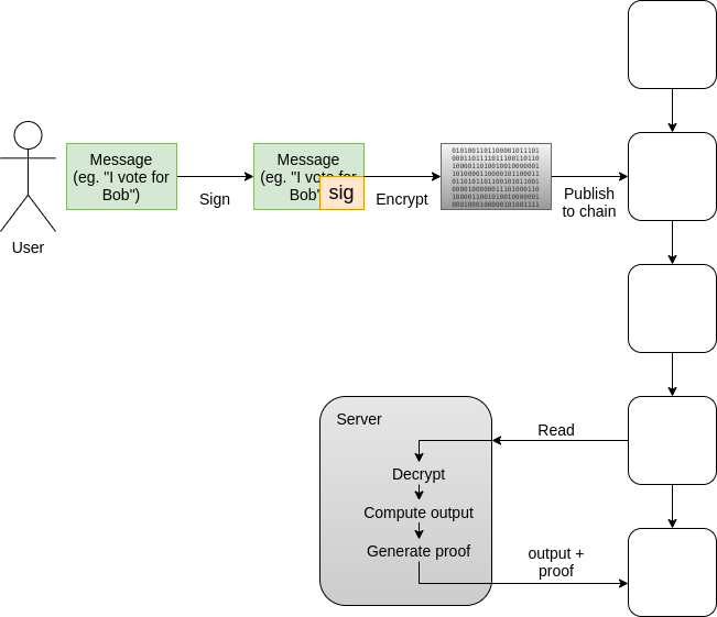 - Encryption of votes put on a blockchain can add privacy. Zero knowledge proofs can bring back correctness despite observers being unable to add up votes directly because they are encrypted.