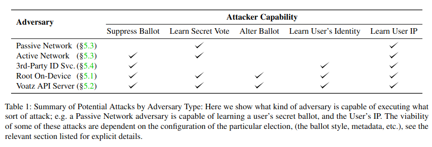 The hacks were pretty serious. Here is a table of the attack capabilities that researchers analyzing Voatz managed to uncover: