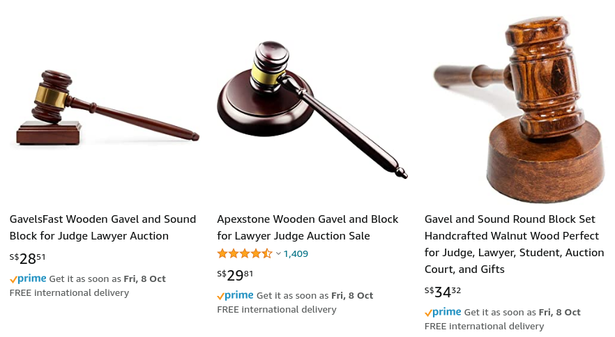 Gavels on Amazon. A world where these were NFTs that actually came with associated judging power may well be a fun one, but I would certainly not want to be a defendant!