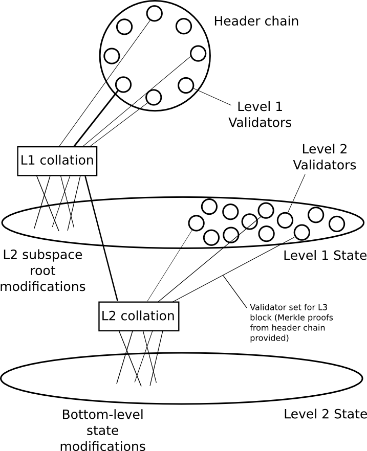 But what if we had gone the opposite path? Well, there actually are Ethereum researchers who heavily explored a much more sophisticated sharding system: shards would be chains, there would be fork choice rules where child chains depend on parent chains, cross-shard messages would get routed by the protocol, validators would be rotated between shards, and even applications would get automatically load-balanced between shards!