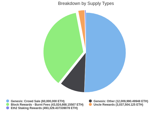 About half of the ETH that exists today was sold in an open public ether sale, where anyone could send BTC to a standardized bitcoin address, and the initial ETH supply distribution was computed by an open-source script that scans the Bitcoin blockchain for transactions going to that address. Most of the remainder was mined. The slice at the bottom, the 12M ETH marked "other", was the "premine" - a piece distributed between the Ethereum Foundation and ~100 early contributors to the Ethereum protocol.
