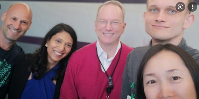 Vitalik gives a friendly hello to Eric Schmidt, former CEO of Google and advisor to US Department of Defense.