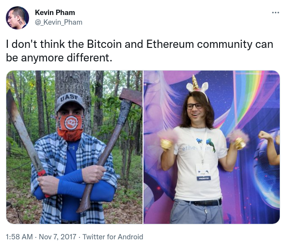 Now, what do Bitcoin and Ethereum culture actually look like? Well, let's ask Kevin Pham: