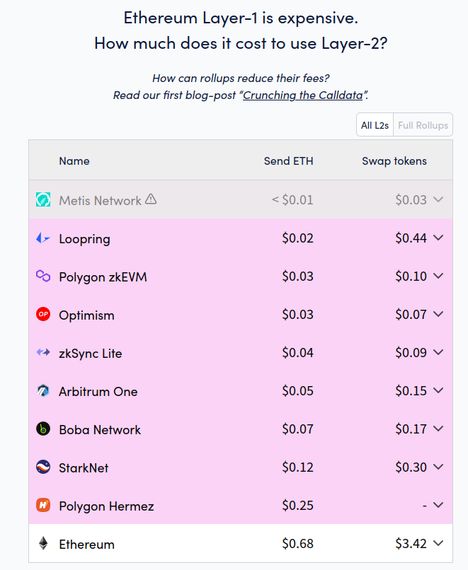 We can calculate what this means by looking at comparisons between L1 gas costs and L2 gas costs: