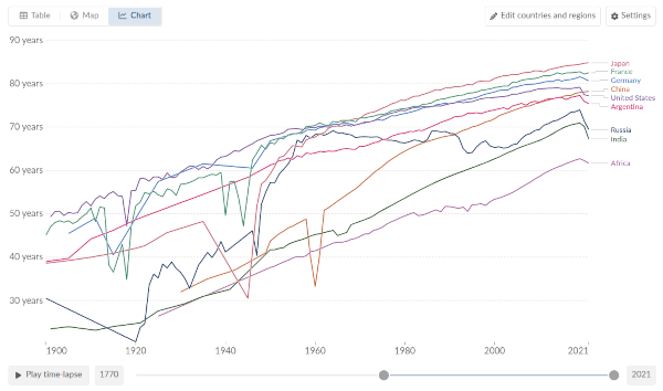 To give one concrete example, let's look at a life expectancy chart: