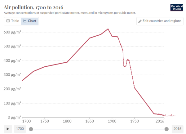 These problems are a big deal. My answer to why I am optimistic about our ability to overcome these challenges is twofold. First, after decades of hype and wishful thinking, solar power is finally turning a corner, and supportive techologies like batteries are making similar progress. Second, we can look at humanity's track record in solving previous environmental problems. Take, for example, air pollution. Meet the dystopia of the past: the Great Smog of London, 1952.
